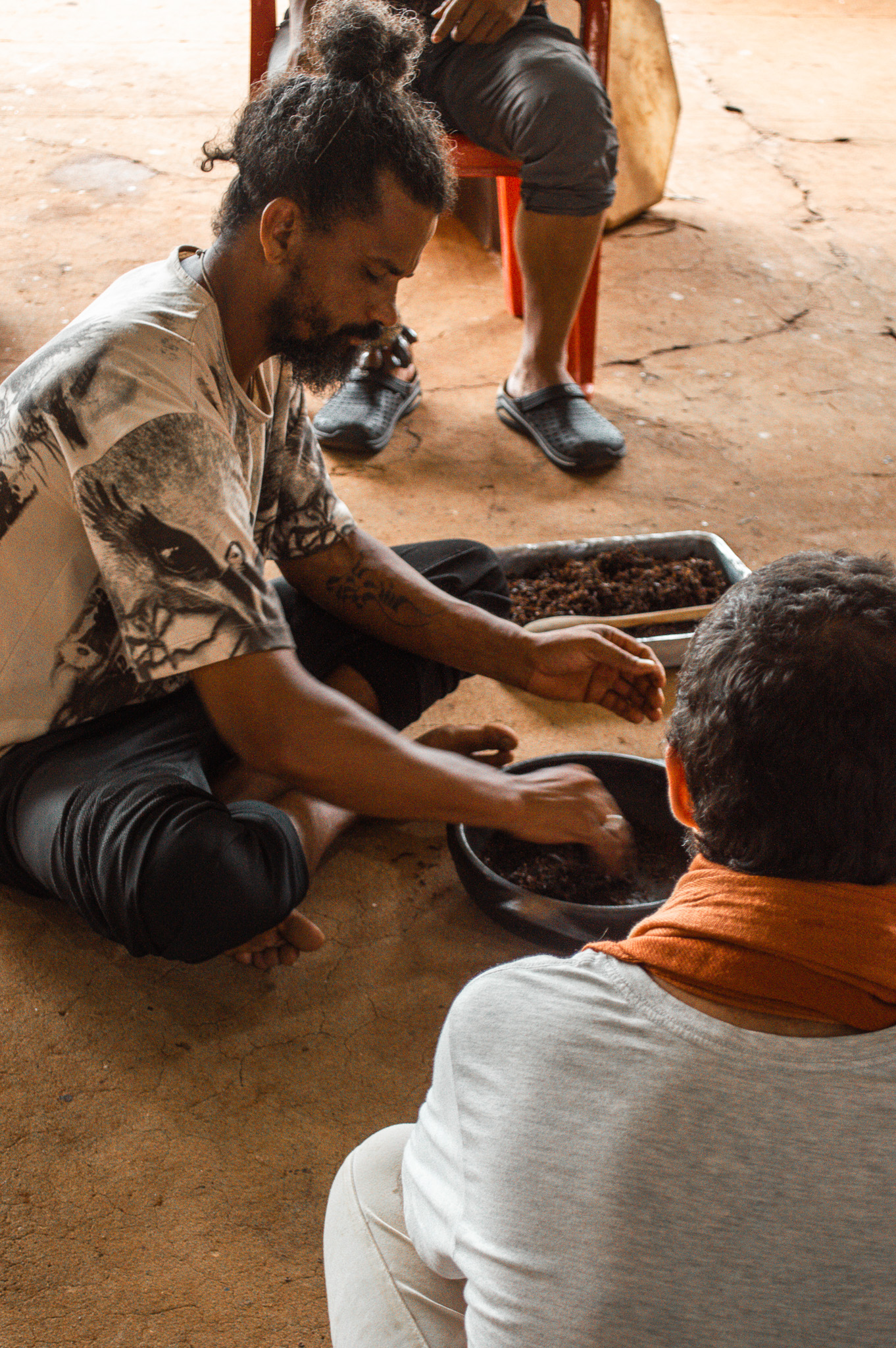Além de atividades direcionadas, como a oficina de maracá e feitura de rapé, onde todos aprenderam a confeccionar esses artigos importantes da medicina xamânica, eles também puderam vivenciar a cerimônia com ca’api (ayahuasca) durante a noite do dia 11.